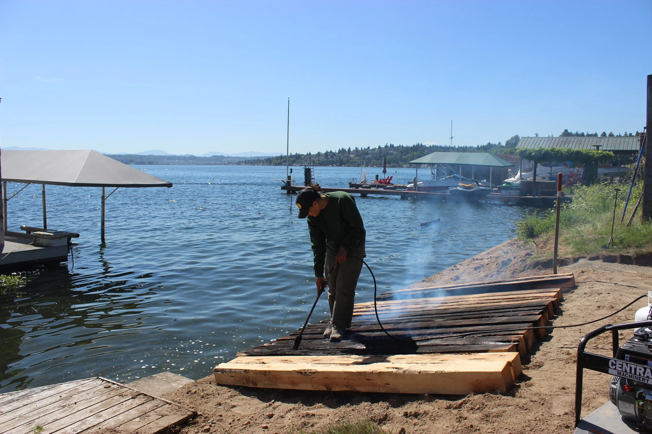 Yakisugi is a Japanese woodworking preservation technique. It can be left alone or oiled; either way, the finished product is beautiful and stands the test of time. It is safe to mingle with, free of harsh chemicals/paints/stains the final product is clean and green. Built with naturally rot-resistant Juniper timbers, we created a small retaining wall that effortlessly molds with the environment. The bench brings together Douglas Fir and Cedar, big enough to seat a party and peaceful enough to burn one down with a partner. Intention is everything in our design.